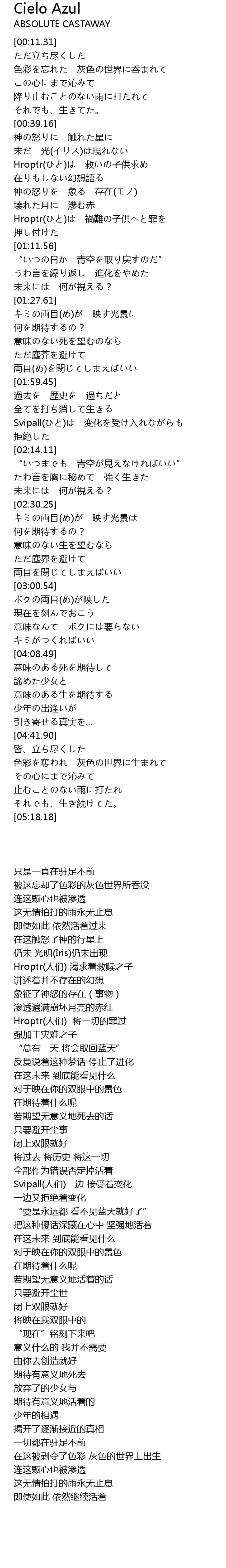 | [00:50.94] | 未だ 光(イリス)は現れない |