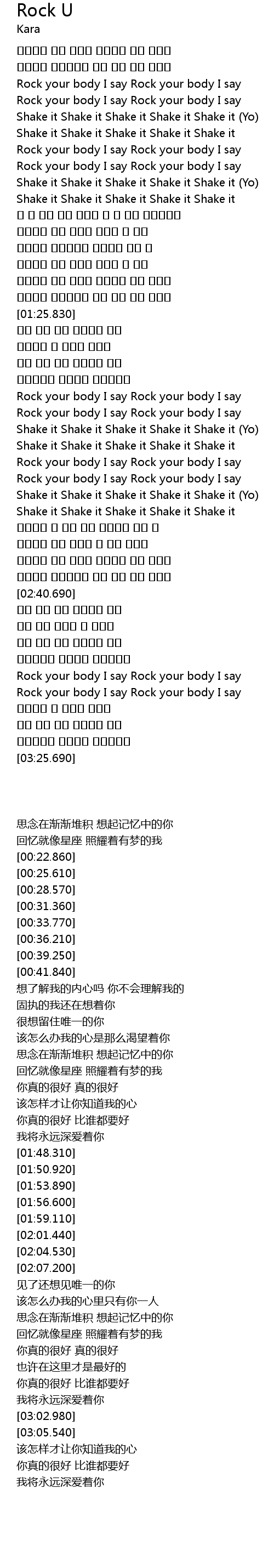| [00:25.610] | Rock your body I say Rock your body I say |