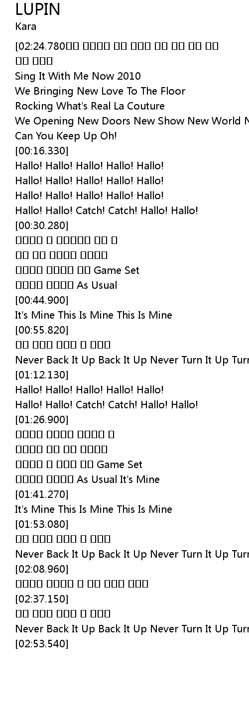 | [02:45.780] | Never Back It Up Back It Up Never Turn It Up Turn It It Up |