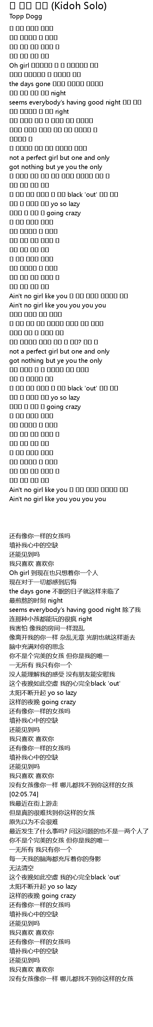 | [03:18.19] | Ain't no girl like you 너 같은 여자는 어디에도 없어 |