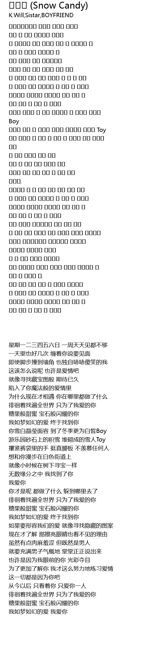 | [00:17.660] | 星期一二三四五六日 一周天天见都不够 |