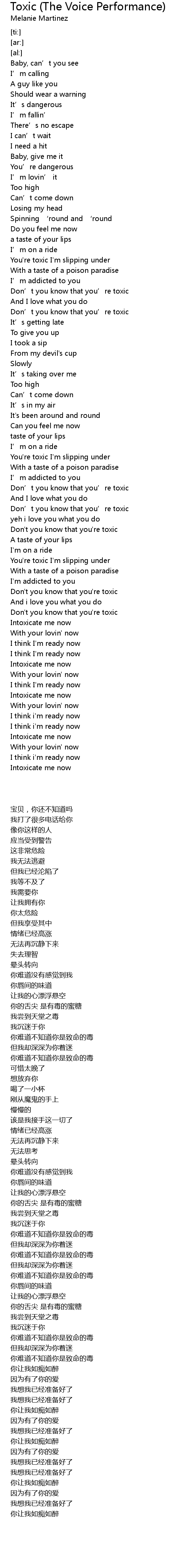 | 歌曲 | Toxic (The Voice Performance) |