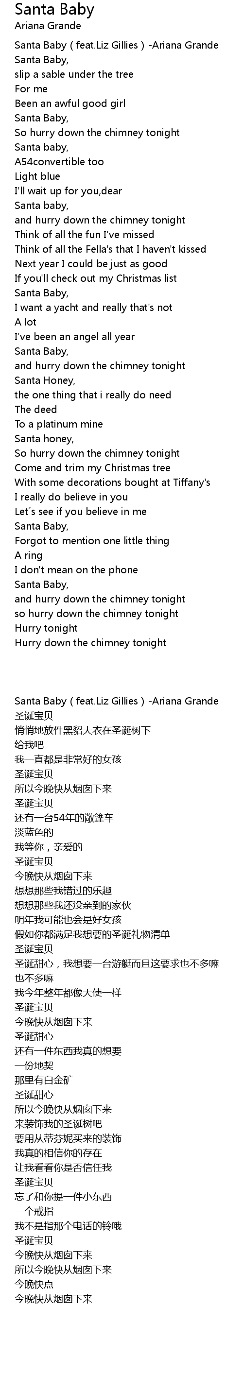 | [00:03.39] | Santa Baby(feat.Liz Gillies)-Ariana Grande |