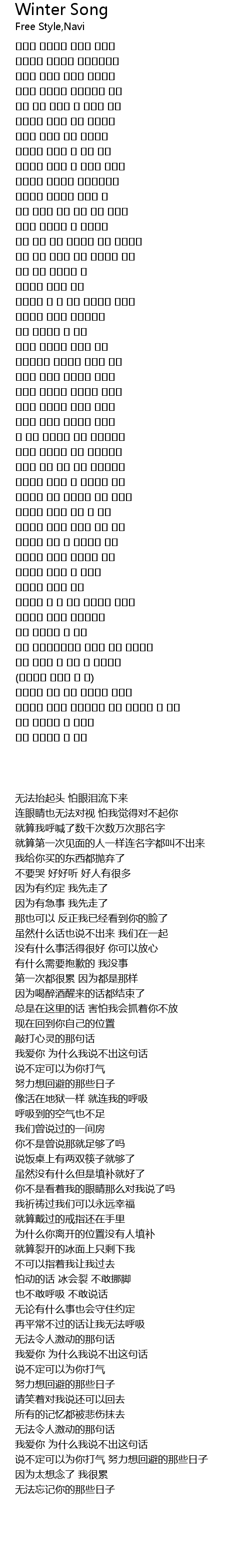 | [02:11.890] | 怕动的话 冰会裂 不敢挪脚 |