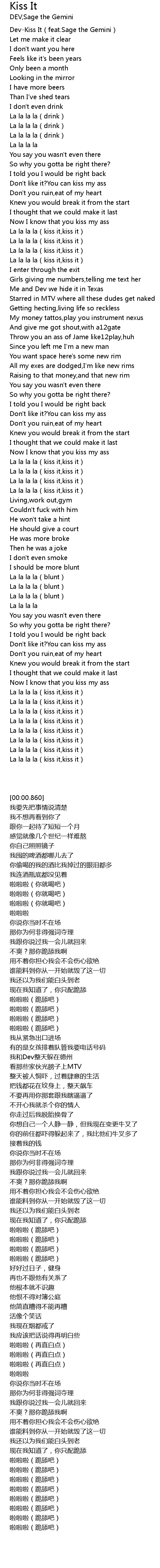 | [00:00.860] | Dev-Kiss It(feat.Sage the Gemini) |