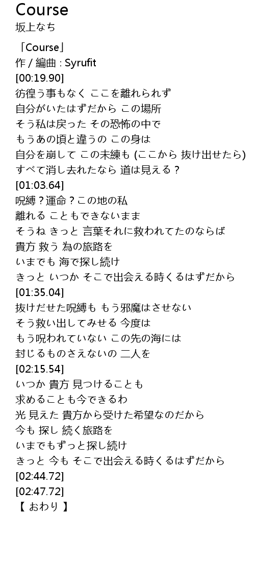 | [02:37.69] | きっと 今も そこで出会える時くるはずだから |