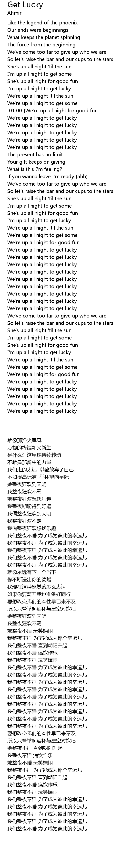 I'm up all night to get lucky |