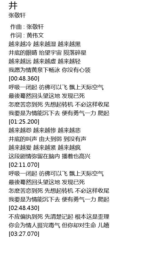 | [00:00.00] | 作曲 : 张敬轩 |