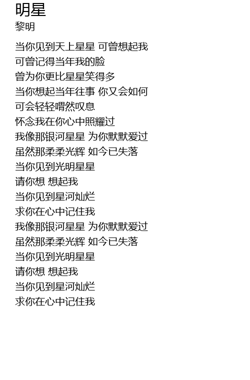 | [00:16.600] | dāng nǐ jiàn dào tiān shàng xīng xīng kě zēng xiǎng qǐ wǒ |