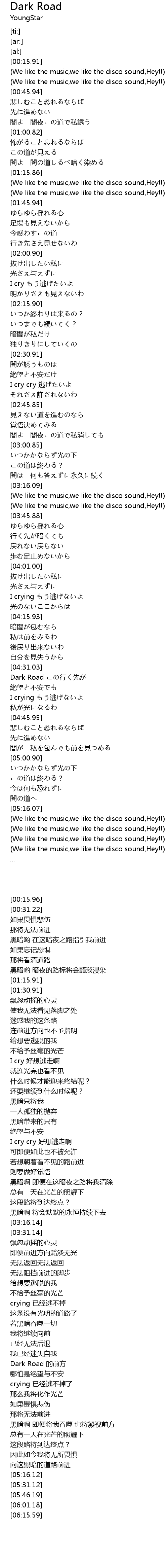 | [04:31.08] | Dark Road 的前方 |