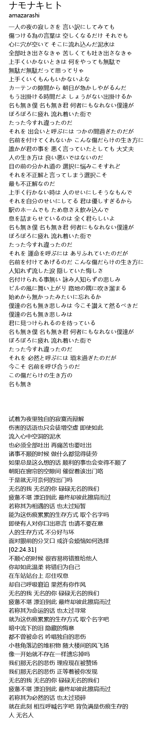 | [03:02.73] | 名も無き僕 名も無き君 何者にもなれない僕達が |