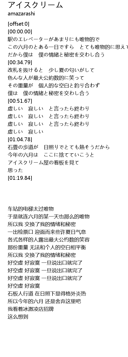 | [01:16.03] | 我看着冰激凌店招牌 |