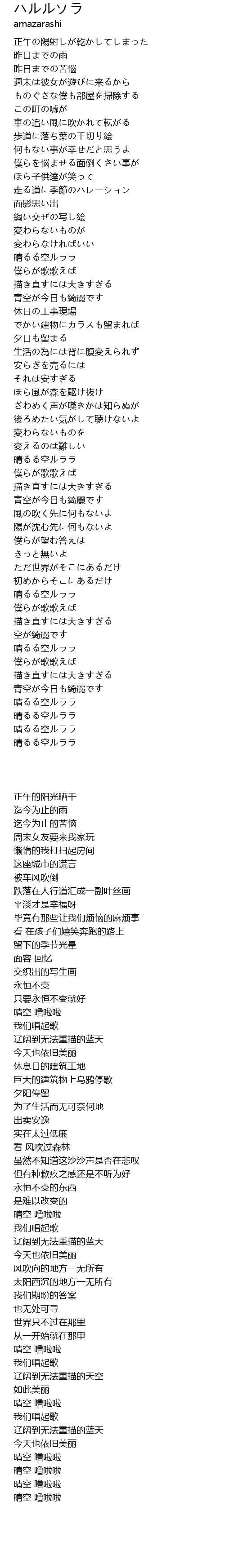 | [04:31.01] | 晴るる空ルララ |