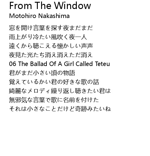 | 歌曲 | From The Window |