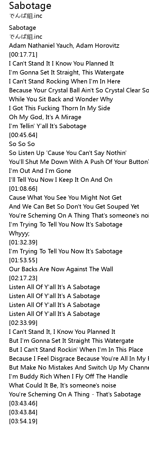 | [02:22.85] | Listen All Of Y'all It's A Sabotage |