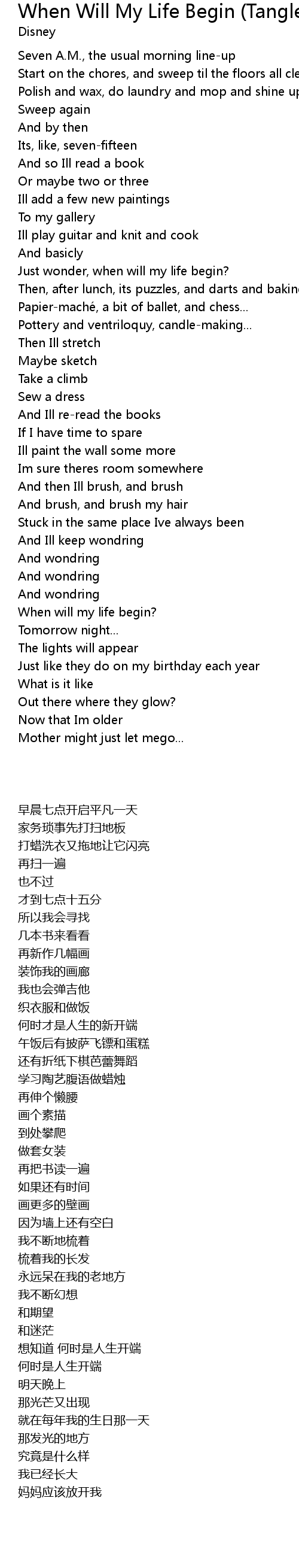 | 歌曲 | When Will My Life Begin (Tangled) |
