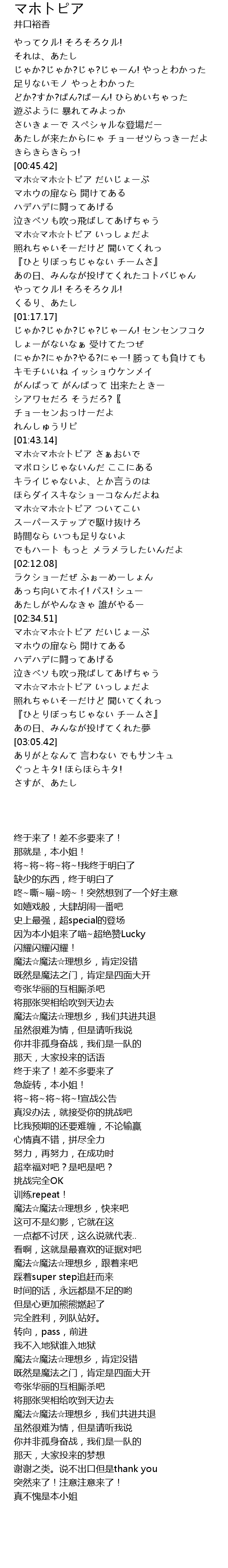 | [02:52.68] | マホ☆マホ☆トピア いっしょだよ |