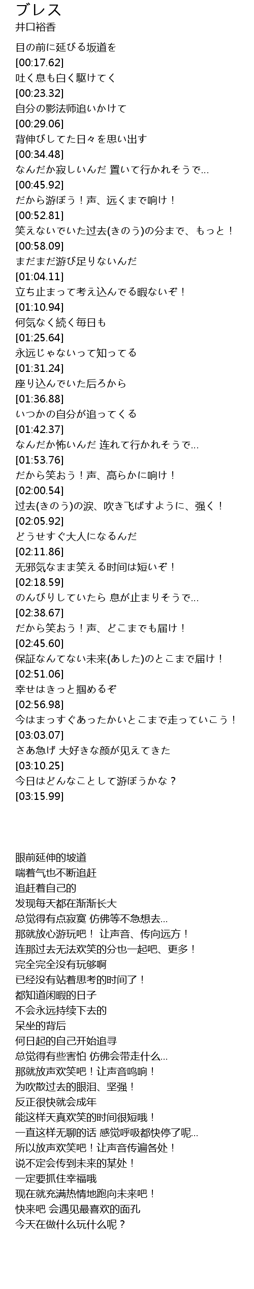 | 歌曲 | ブレス |