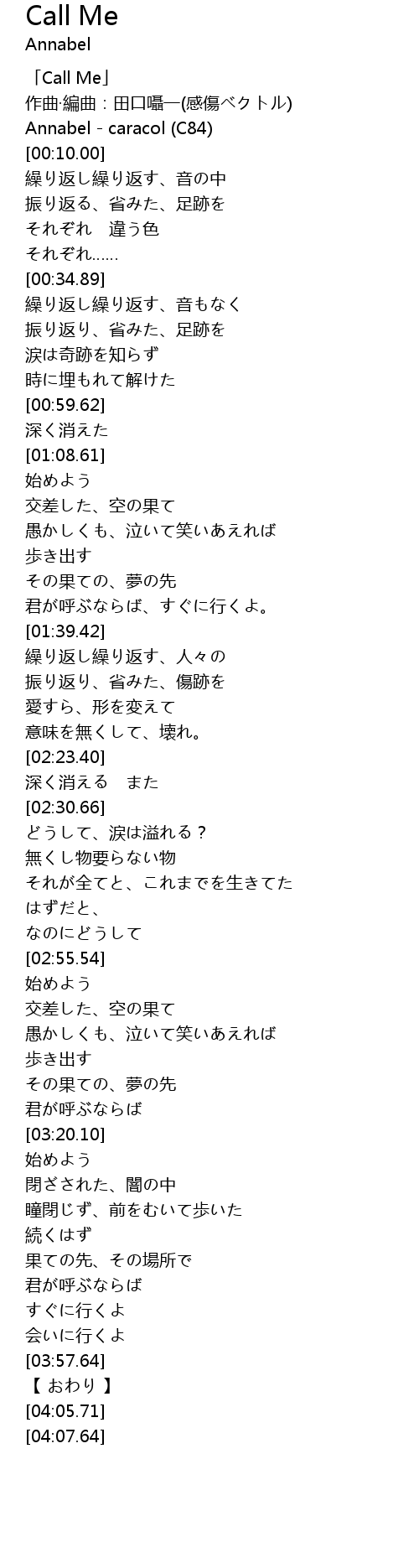 | [00:04.00] | 作曲·編曲:田口囁一(感傷ベクトル) |