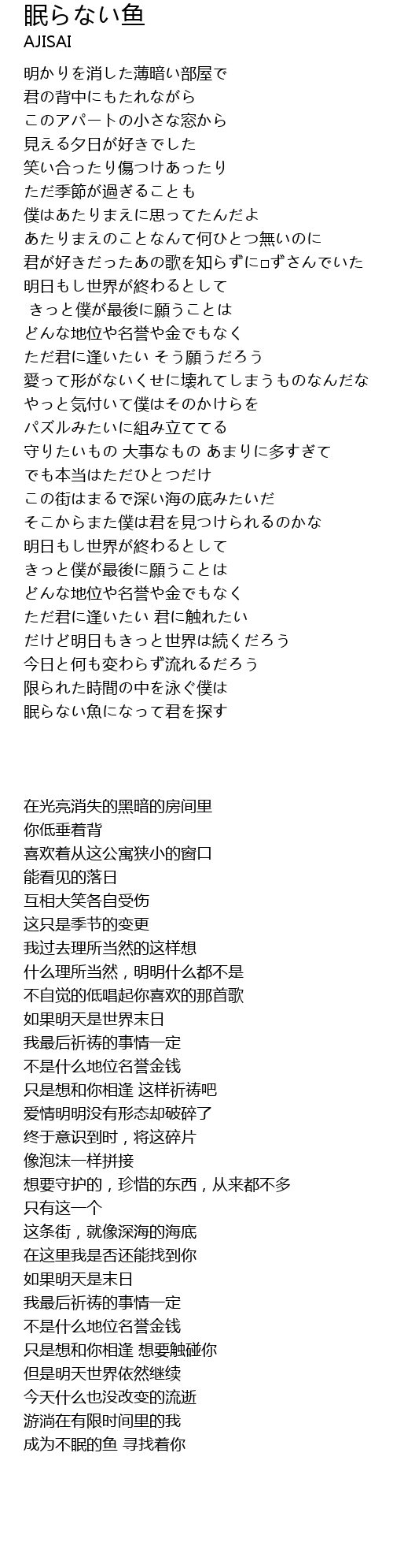 | [03:45.83] | 成为不眠的鱼 寻找着你 |