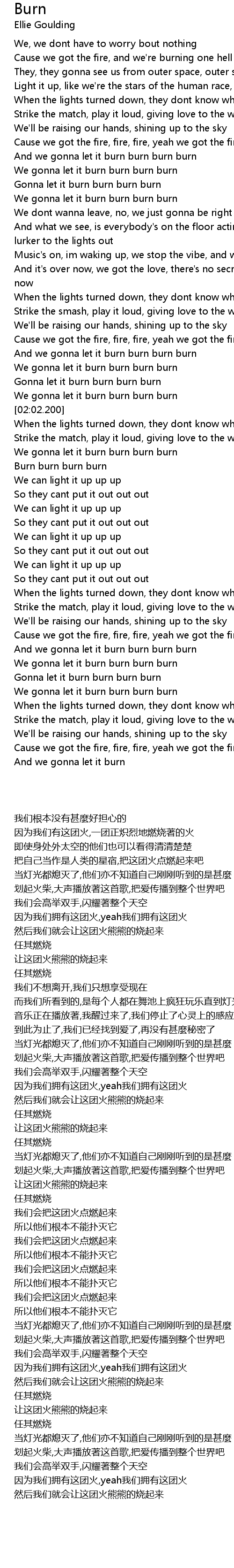 We gonna let it burn burn burn burn |