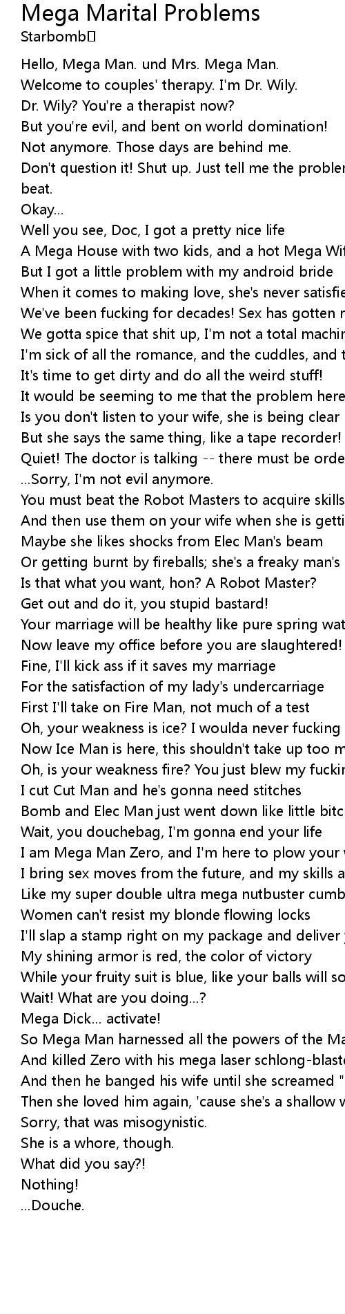 | [00:00.00] | Hello, Mega Man. und Mrs. Mega Man. |