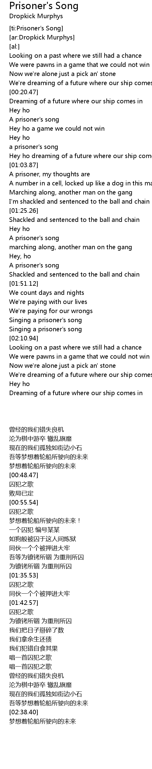 [ti:Prisoner's Song] |