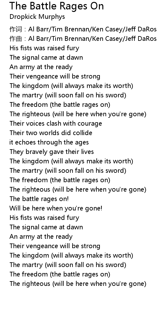 | 作词:Al Barr/Tim Brennan/Ken Casey/Jeff DaRosa/Matt Kelly/James Lynch | |