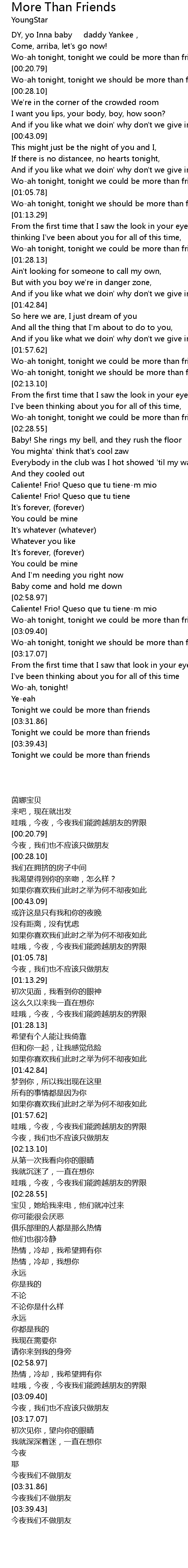 | [00:58.79] | Woah tonight, tonight we could be more than friends |