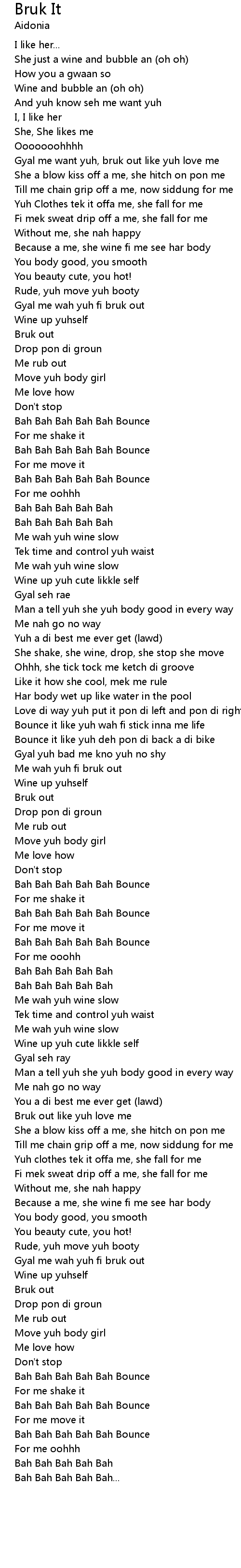 Me wah yuh fi bruk out |