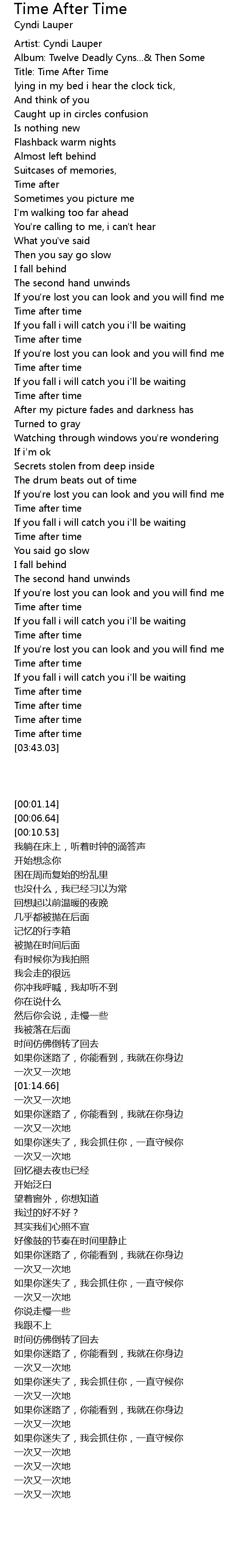 Title: Time After Time |