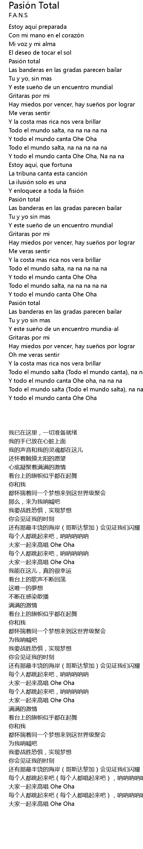 | 歌曲 | Pasión Total |