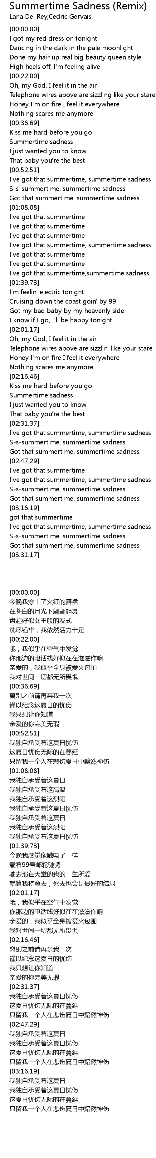 I've got that summertime,summertime sadness |
