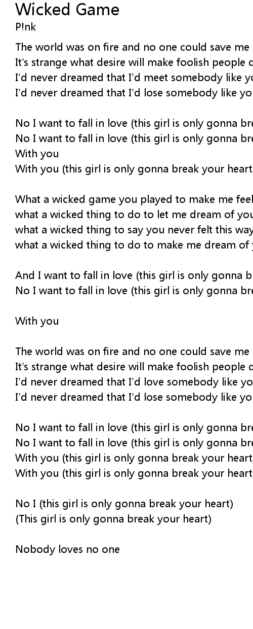 What a wicked game you played to make me feel this way |