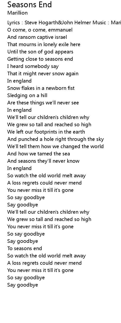 | Lyrics:Steve Hogarth&John Helmer Music:Marillion | |