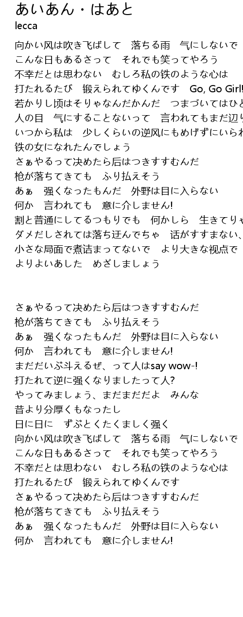 | 向かい风は吹き飞ばして 落ちる雨 气にしないで | |