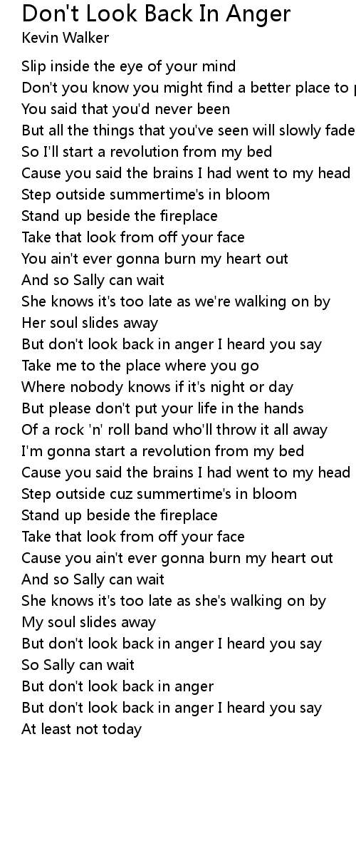 But don't look back in anger |