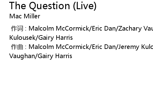 | [00:00.000] | zuo ci : Malcolm McCormick Eric Dan Zachary Vaughan Jeremy Kulousek Gairy Harris |