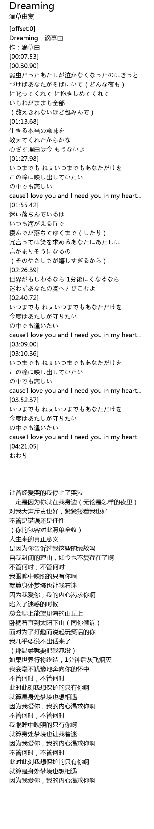 | [00:00.85] | Dreaming - 滴草由 |