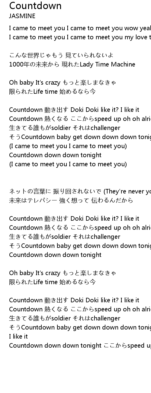 | Countdown down down tonight ここからspeed up oh oh alright |