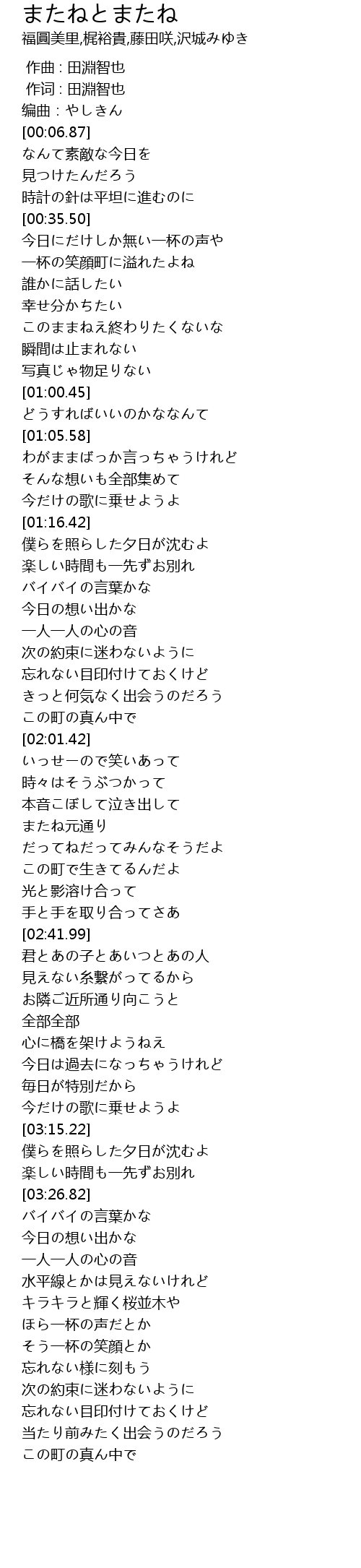 | [00:01.00] | 作词 : 田淵智也 |