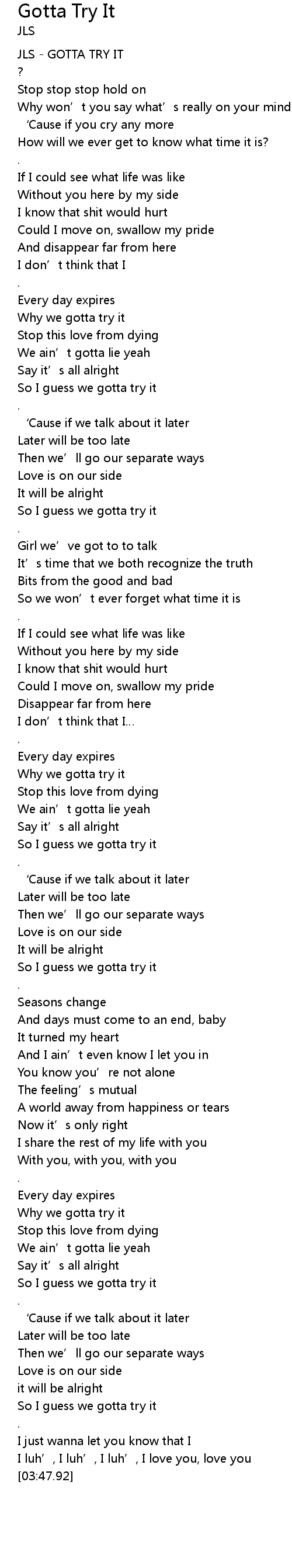| [00:00.47] | JLS GOTTA TRY IT |