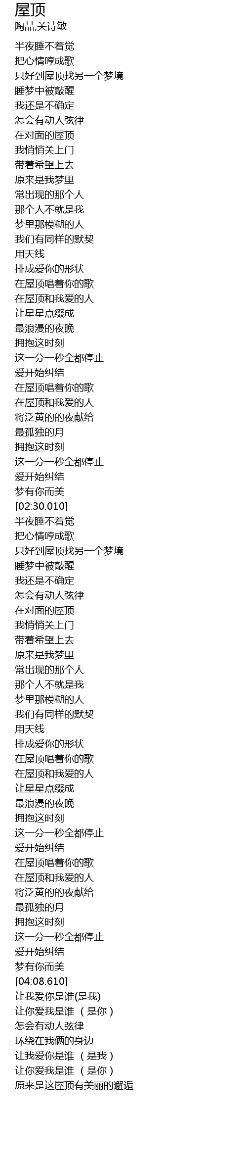 | [01:55.590] | 在屋顶唱着你的歌 |