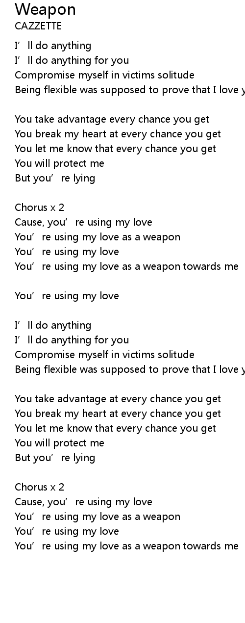 | You’re using my love as a weapon towards me |