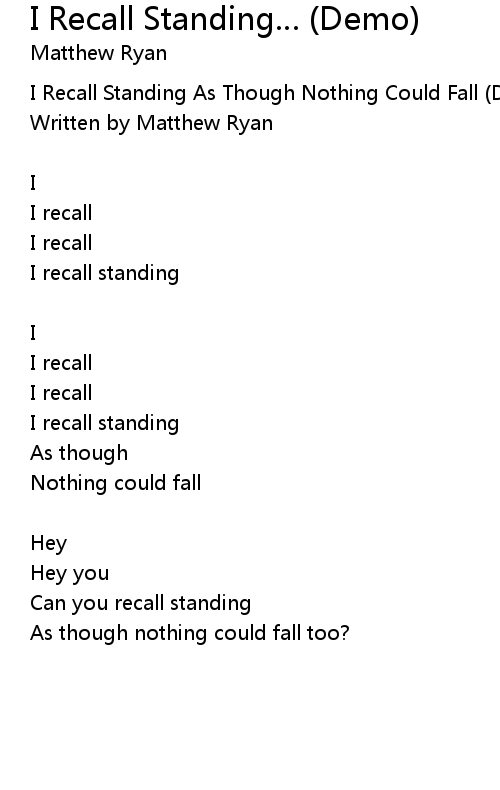 | I Recall Standing As Though Nothing Could Fall (Demo) | |
