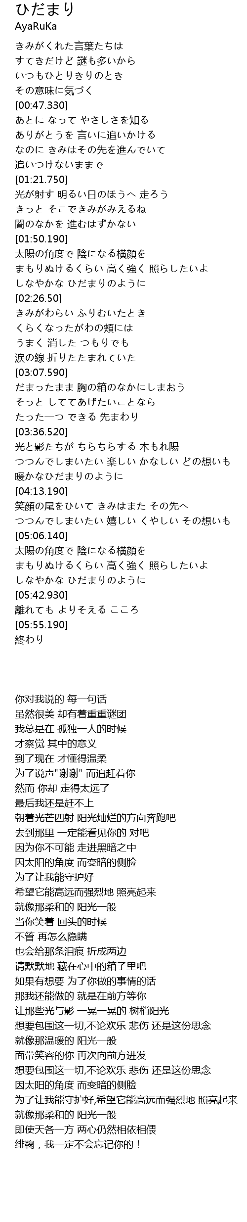 | [03:50.670] | つつんでしまいたい 楽しい かなしい どの想いも |
