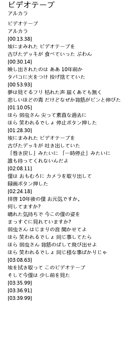| [00:14.75] | 埃にまみれた ビデオテープを |