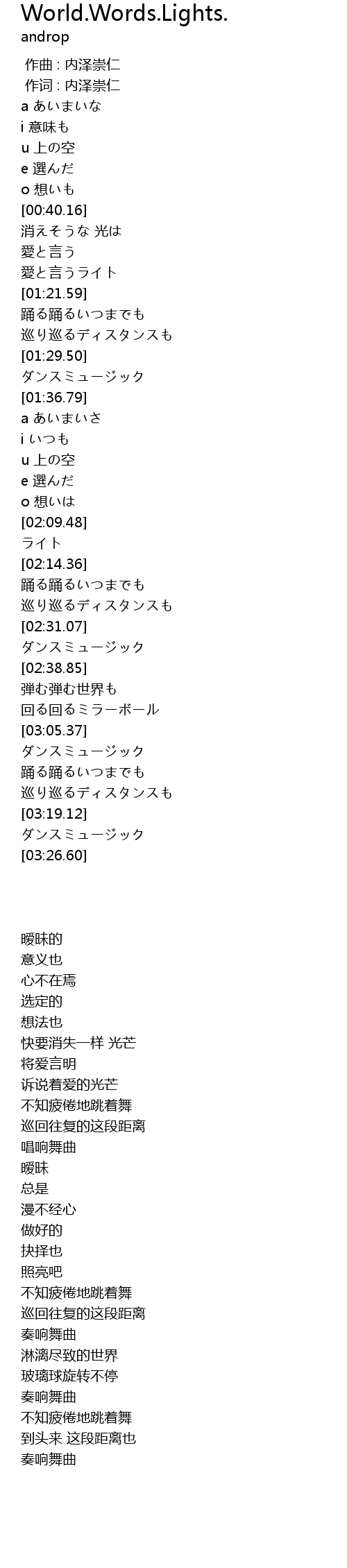 | [00:01.00] | 作词 : 内泽崇仁 |