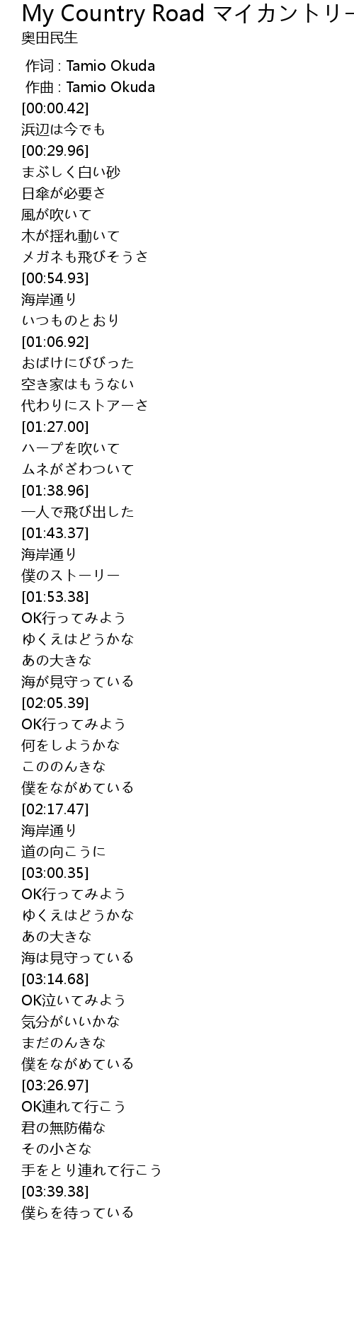| [00:00.000] | zuò cí : Tamio Okuda |