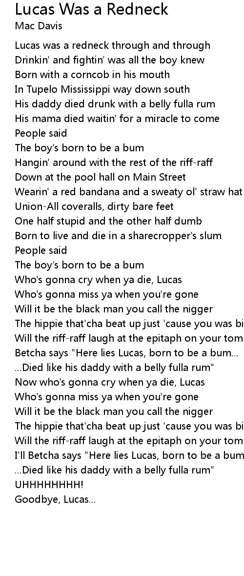 Lucas was a redneck through and through |
